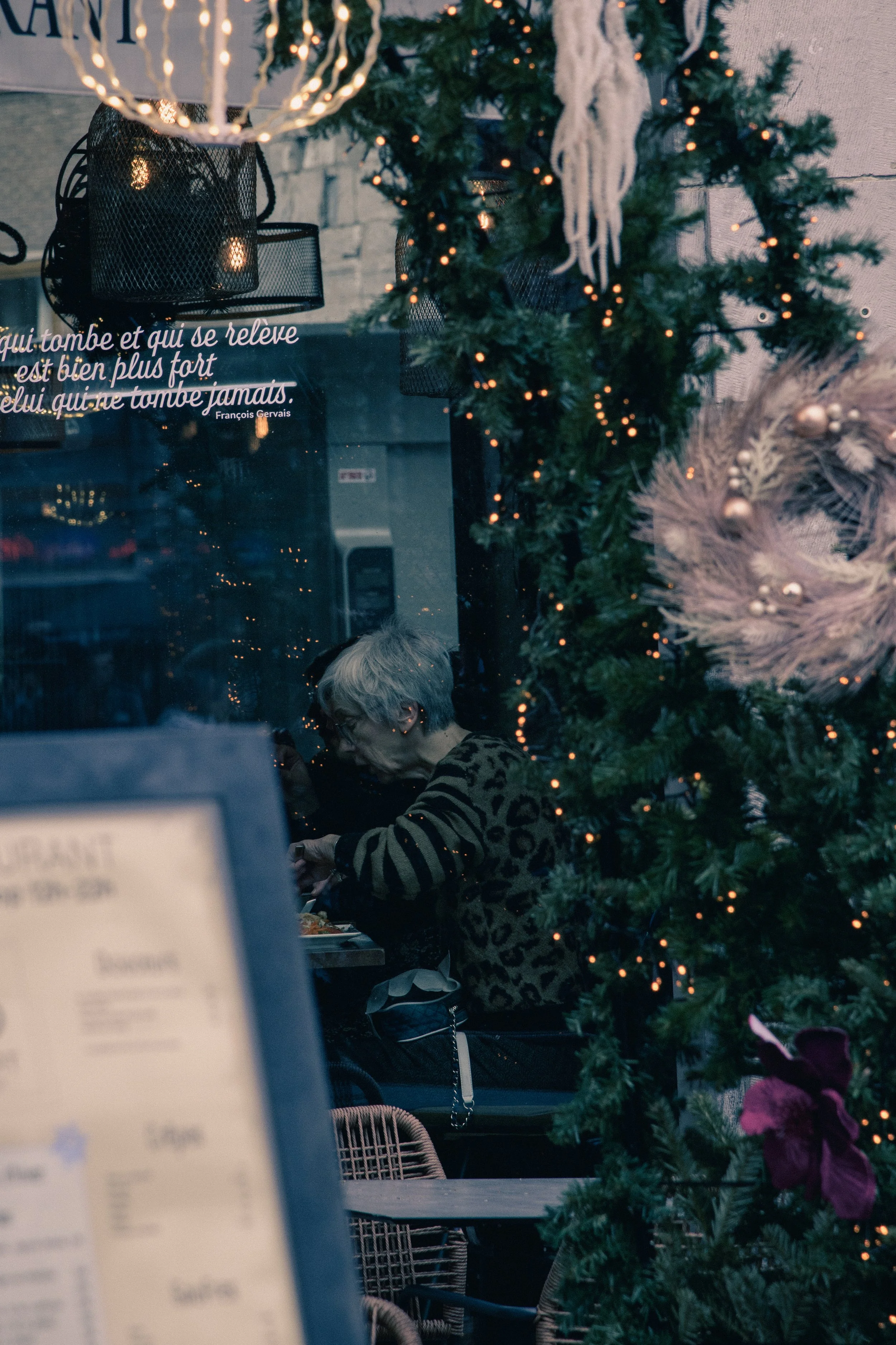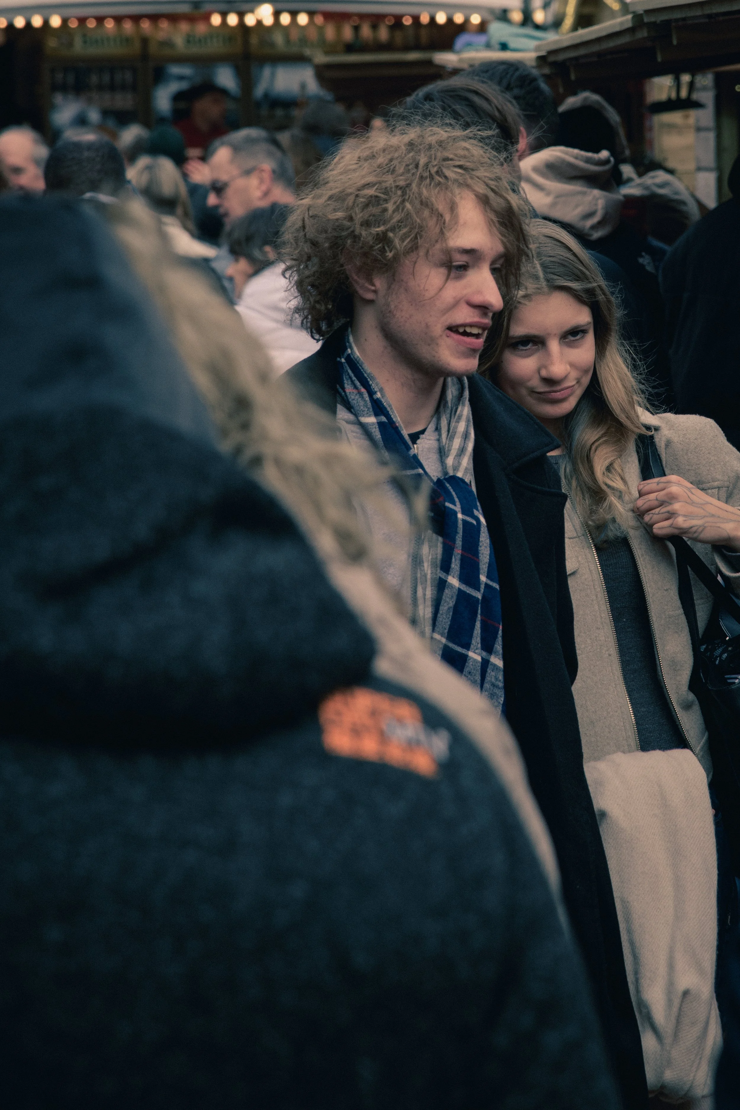 Dopo una lunga passeggiata alla ricerca d’ispirazione, ci concediamo una tappa finale: una birra fresca ai mercatini di Natale. Si rivelano un ottimo terreno di caccia visiva, perfetti per intercettare una situazione interessante, un volto, uno sguardo, o anche solo un gesto.