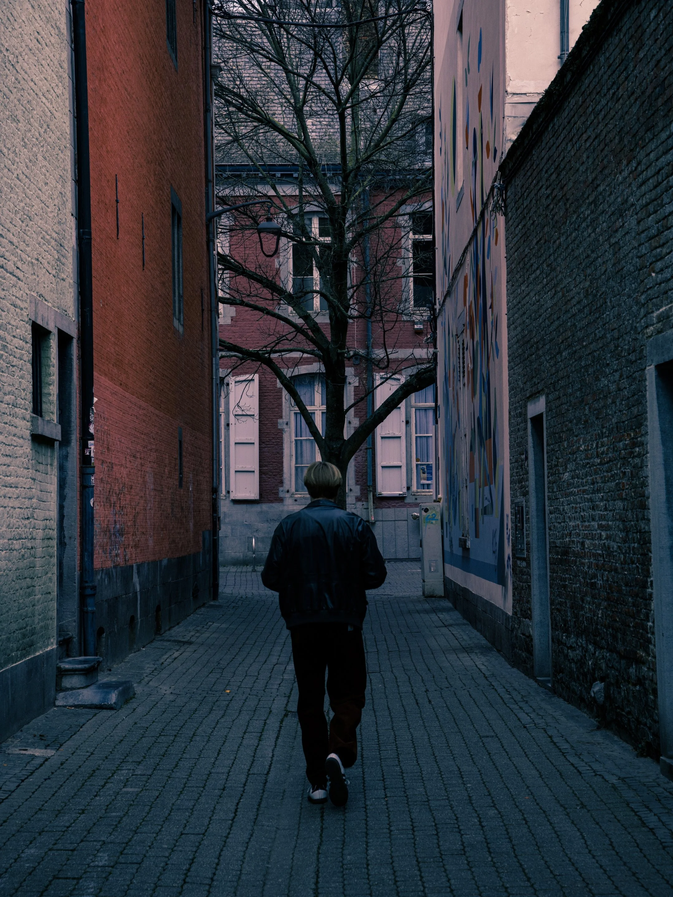Ragazzo a passeggio, assorto nei suoi pensieri.